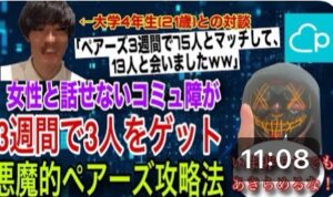 ビッグボス::きついよね。負担がかかると、結構それがなんか嫌悪感みたいなところにつながるからね。あと、最後に言いたいのが共感するより共感させるテクニックの方が超強いっていうのはあるかな。やっぱり例えばなんか、なんかあの、俺がよく言うのはアプリを使っている人には必ず言っているのが、結構なれなれしい人いません?みたいな質問して100%いますねっていう。あれ女の子目線で考えると急に来られてなんか、え!?みたいな感じになりますよねーみたいなことは俺がよく言うね本当に。絶対ホントにそうですよーみたいな感じでくるから、そっから共感させてって、